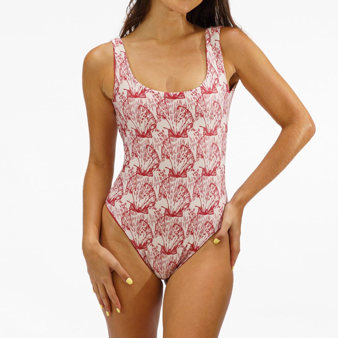 Low Back Bodysuit 'Red Scallop'