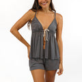 Flirty, fun, and oh-so-chic! Lulu’s pajama is designed for those who love to feel confident and carefree. The airy top ties at the front for a playful touch, offering maximum comfort without underwire. Paired with soft, breathable shorts, this set is perfect for a sweet and dreamy night. Let your vibrant personality shine, even in your sleep!