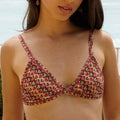 Designed without any metal hardware, it relies entirely on soft, looped straps that adjust effortlessly to your body for the perfect fit. The classic triangle shape offers timeless support and versatility, while the delicate strap arrangement in the back creates a refined silhouette that feels both modern and effortless.